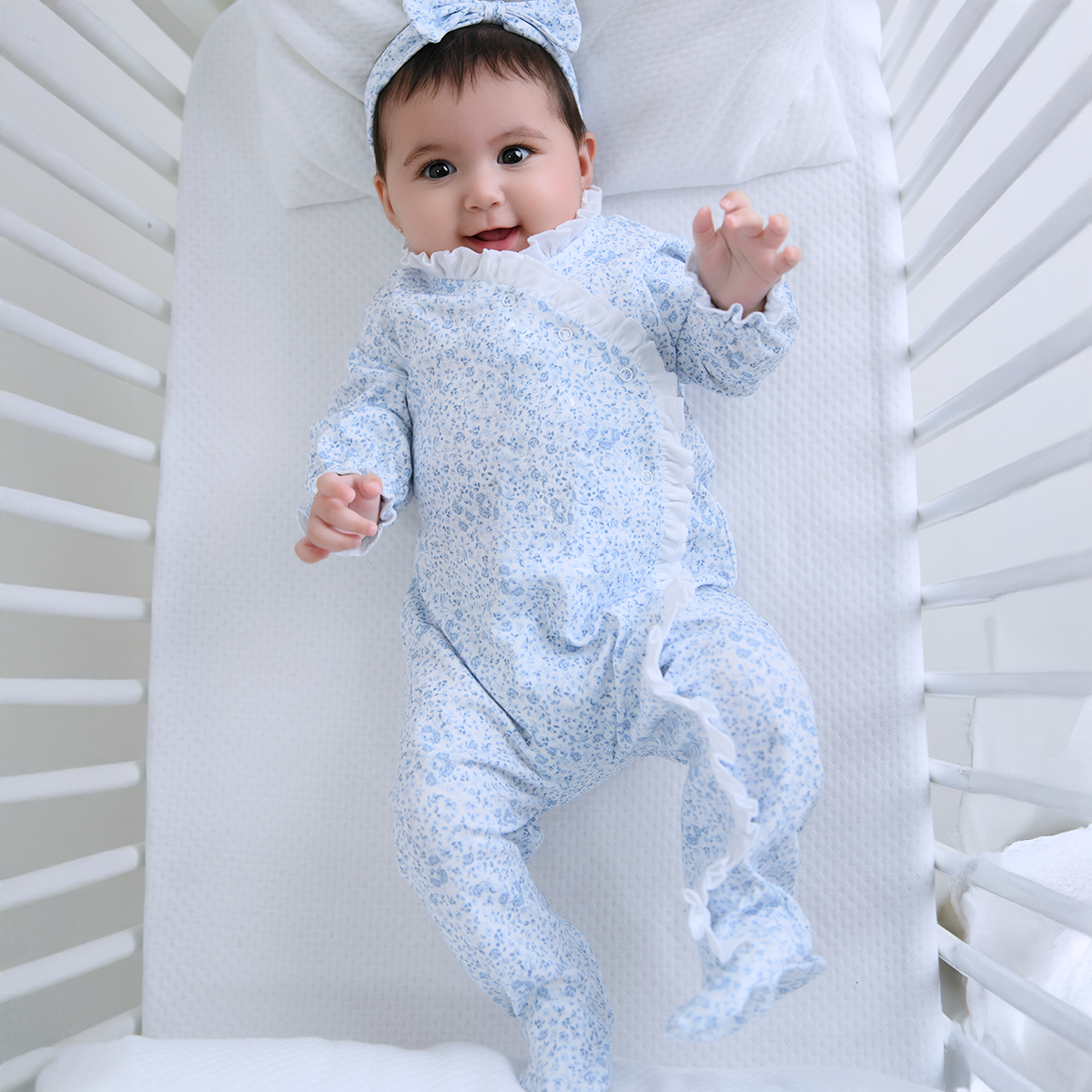 Blue Roses Printed Footie | Baby Girl