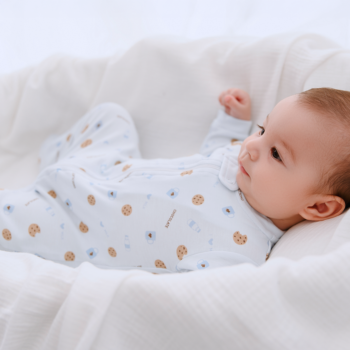 Soft and luxurious Peruvian Pima cotton footie with Cookies print. Ultra-soft, durable, and machine washable. Handmade by Peruvian artisans.
