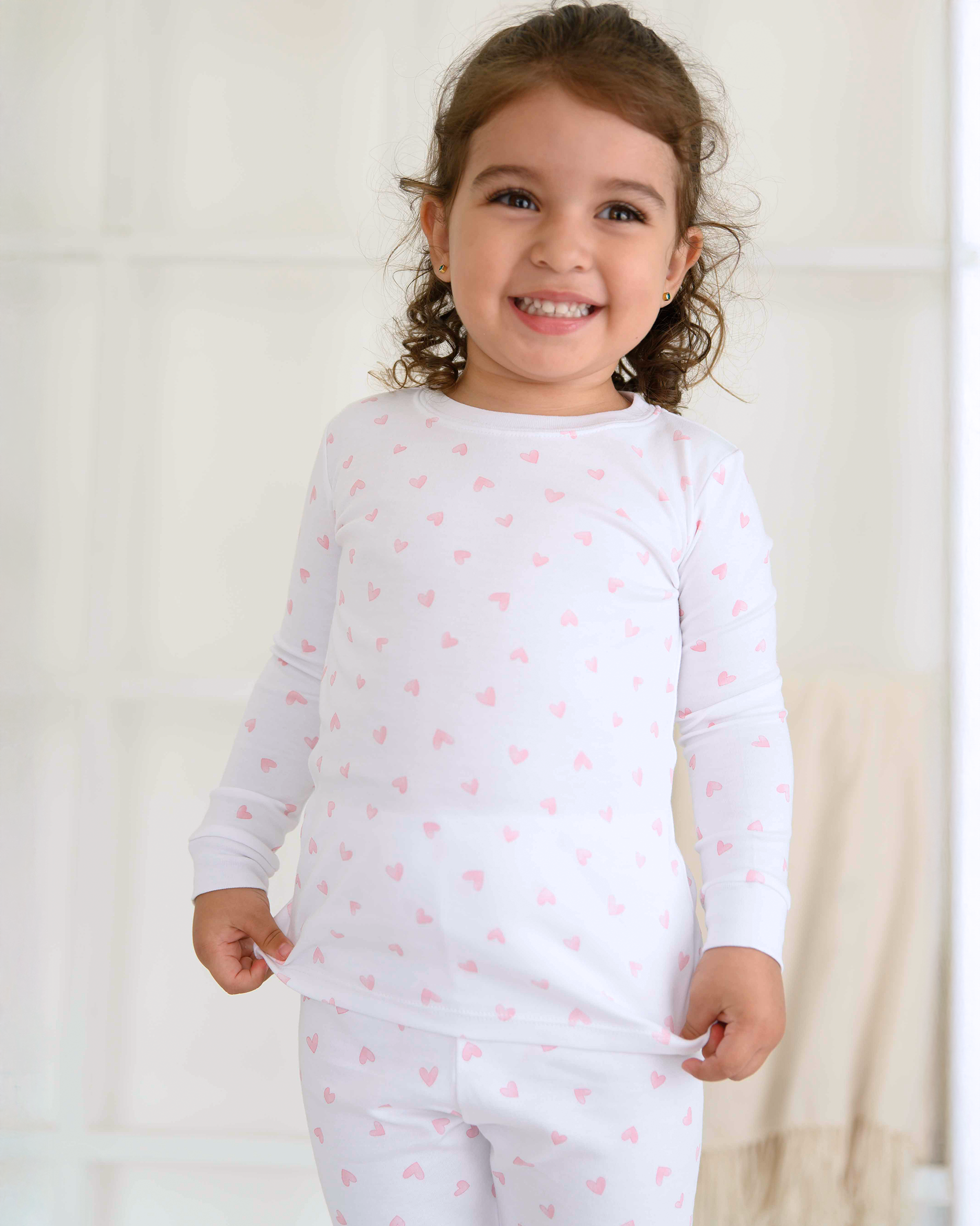 Soft and luxurious Peruvian Pima cotton pijama with Festive Hearts print. Ultra-soft, durable, and machine washable. Handmade by Peruvian artisans.